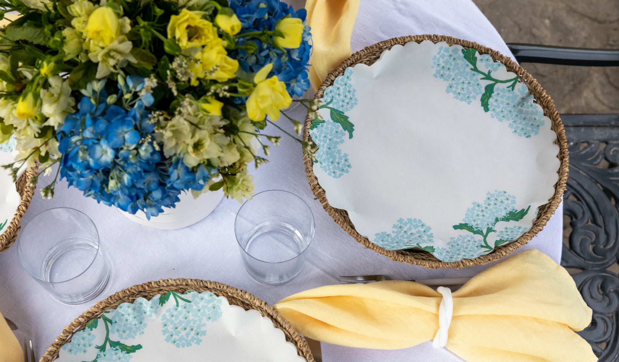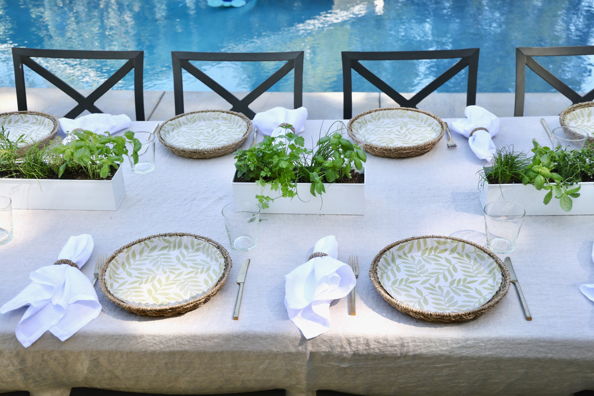 A stylish tablescape easily altered with different liners.