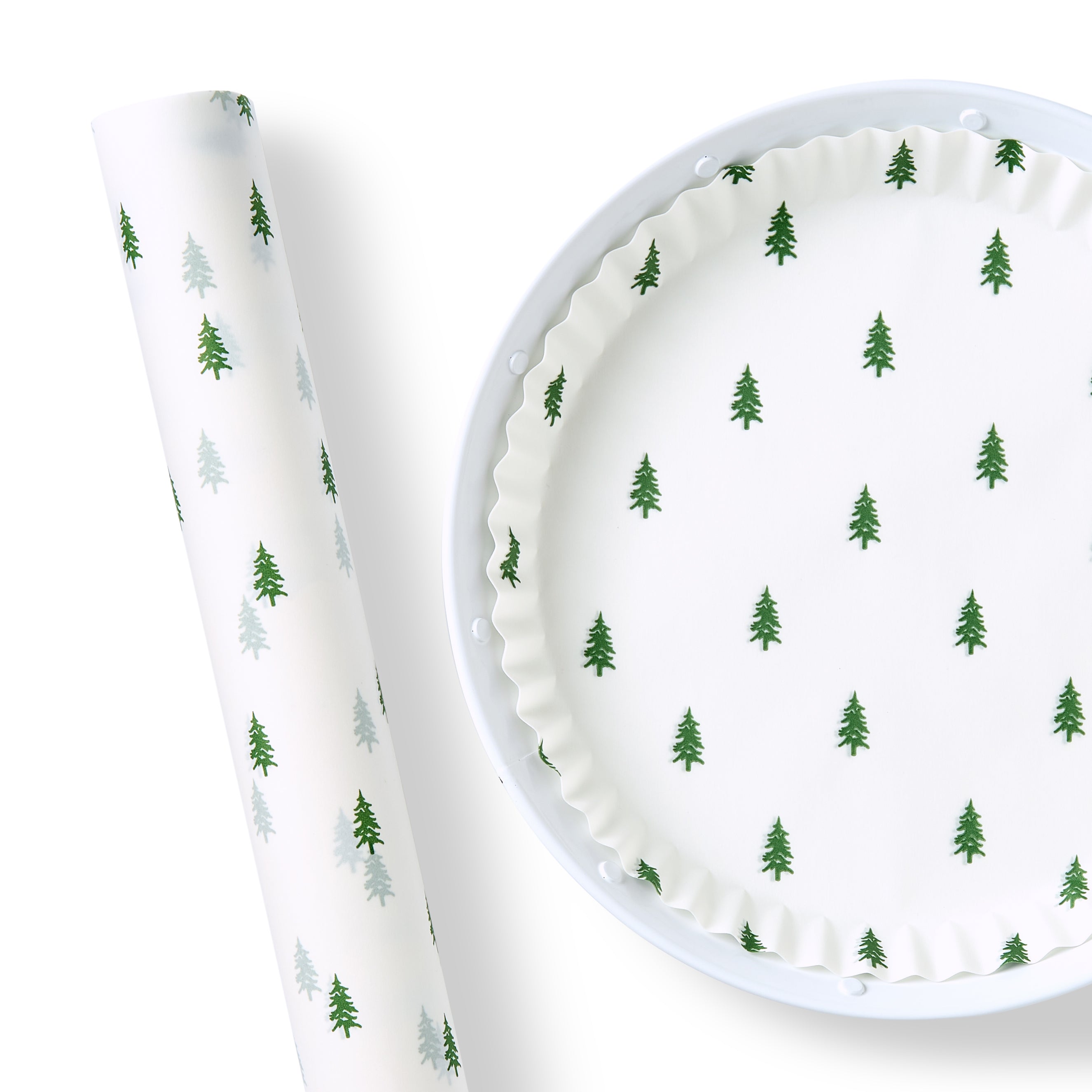 A pattern that feels fresh all year long, our scattered evergreen tree design brings a touch of nature to any table or gift. The beautiful green trees add an effortless, timeless charm. Love this look? Check out the same pattern in our plate liners for even more ways to use it.