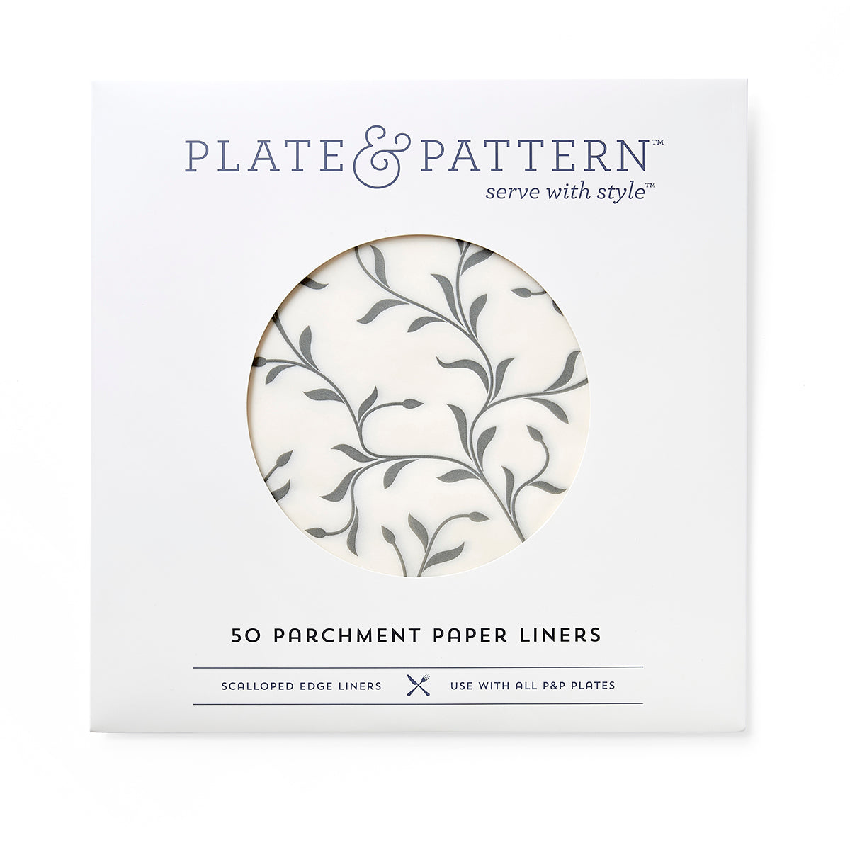 Our compostable liners made of heavy-duty parchment paper are designed to use with all P&P plates and are great for lining trays and platters, too.