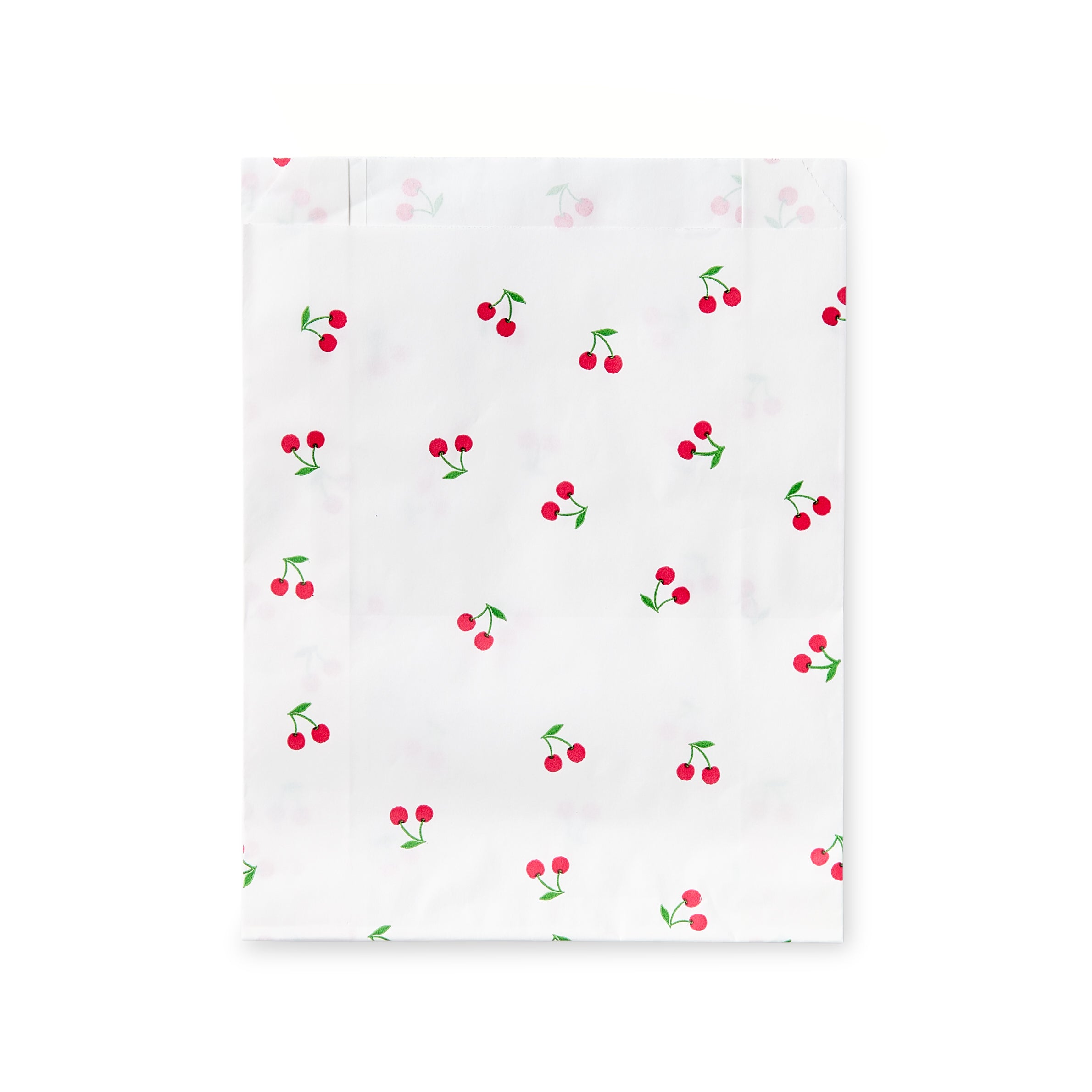 Brighten any gift or treat with our Cherry on Top Paper Pouches. Featuring scattered cherries, this playful pattern adds a fun, cheerful, and whimsical touch.